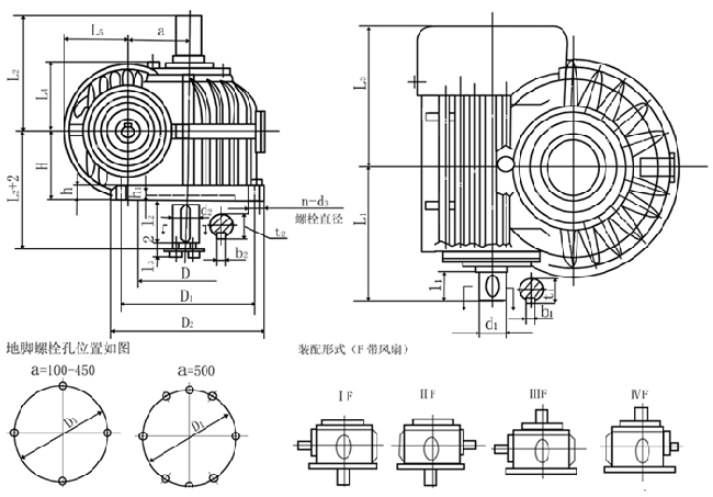 本系列減速器符合中華人民共和國國家標準(GB9147—88) 主要包括:CWU減速機蝸桿在下型 CWS減速機蝸桿在側型 CWO減速機蝸桿在上型 中心距有16種a=63、80、100、125、140、160、180、200、225、250、280、315、355、400、450、500。 傳動比有12種i=5、6.3、8、10、12.5、16、20、25、31.5、40、50、63