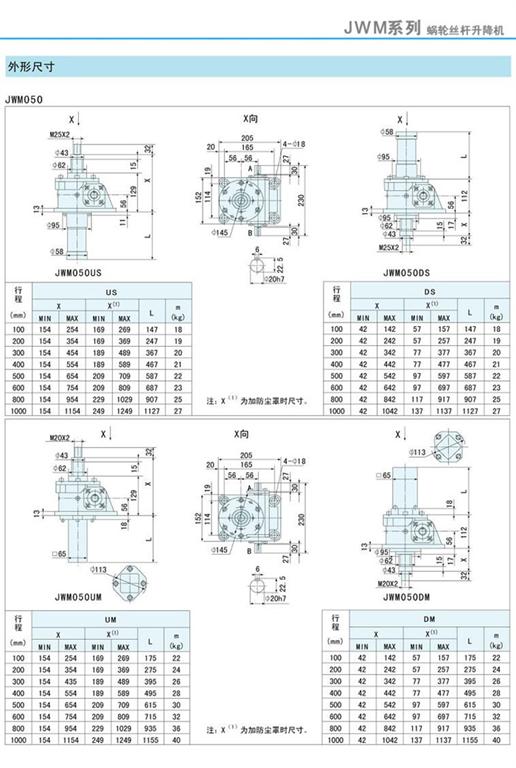 減速機|蝸輪絲桿升降機-JWM升降機050外形尺寸圖-海洋傳動