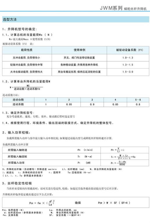 JWM升降機(jī)型號(hào)的確定與輸入功率、絲桿穩(wěn)定性、臨界轉(zhuǎn)速的校核