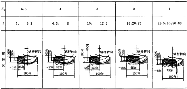 蝸輪齒面接觸區(qū)位置大小