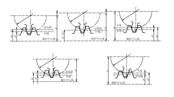 2)變位前后,蝸桿傳動的中心距不變(a "=a),蝸輪齒數(shù)發(fā)生變化(z2"≠z2),如圖9-8d、e所示,z2" 計(jì)算如下: