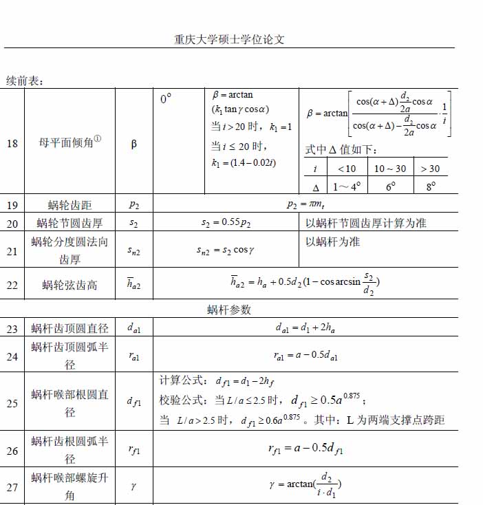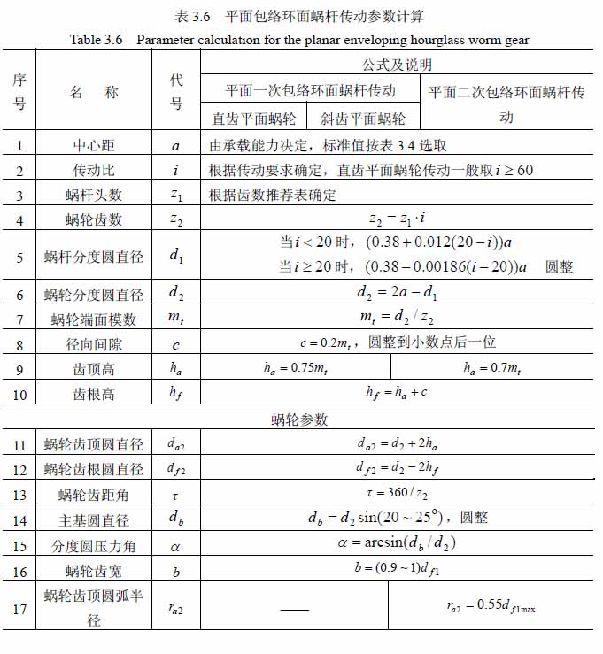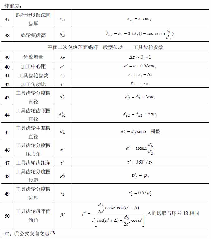 平面二次包絡環面蝸桿參數計算公式: